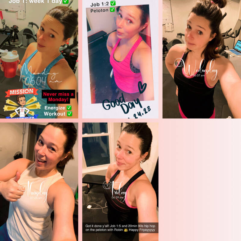 I did an insta story yesterday about how convenient my workouts are since I'm able to do them from my home. We're blessed with an awesome gym downstairs with a Tonal, a Peloton, a rower, an elliptical, and free weights and bands and all the things so that also helps make it easy. However, the program I'm following with a group of girls (the accountability is honestly what brought me to this success this week, I couldn't have done it without them!) is all online and only requires some weights and bands which is nice. I made it a goal this week to start getting up in the mornings and working out right after I feed/change Brooklyn and lay her down for her last morning sleep, with the help of my husband of course. I had four weeks left until maternity leave is up and I go back to work, and we started a new 4 week program together as a group so it was perfect timing for me. Now that I've made it 5/5 I can celebrate, but I also know that 5/5 days I would have no way made it to work on time so that's my next goal over these next couple of weeks trying to transition!