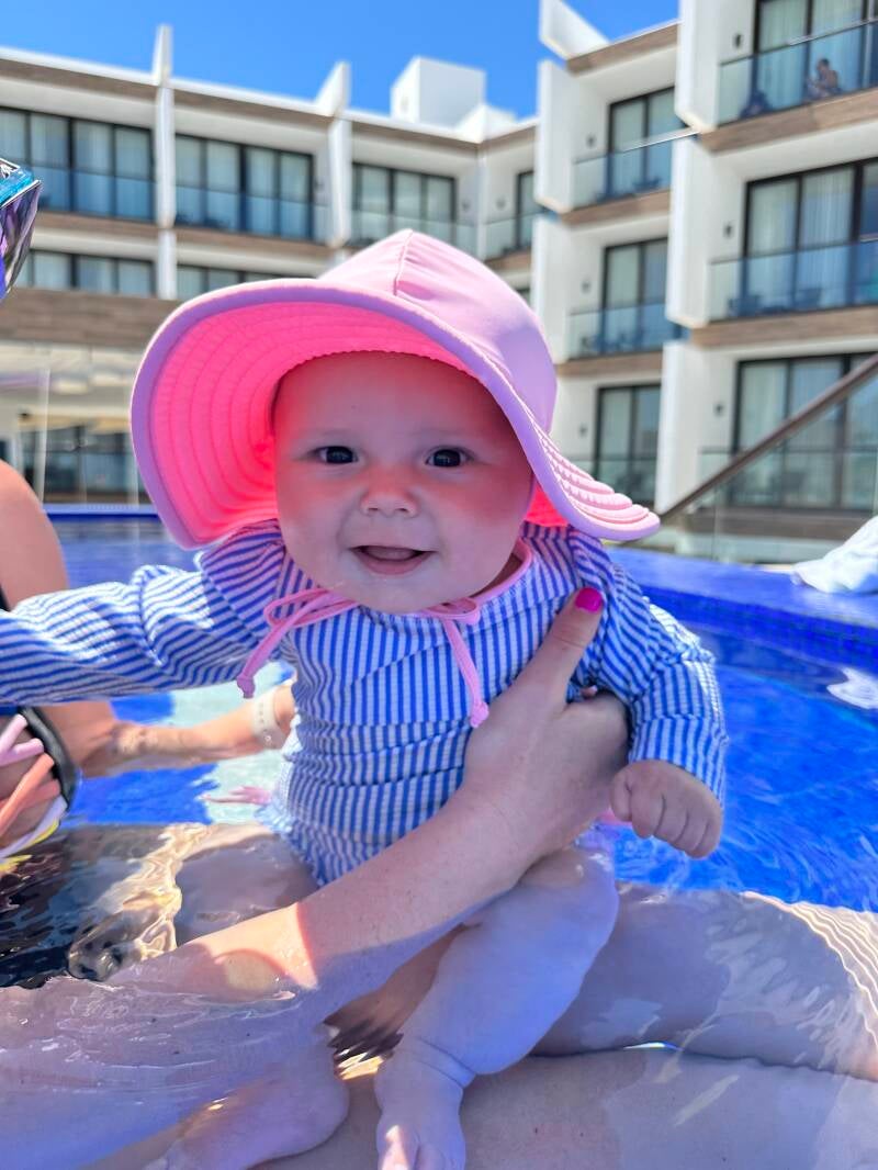 We woke up and got back to the hotel... got our Rufflebutts swimsuit and hat and got to check out the pool for the first time! She wasn't too sure at first, but once she warmed up to the idea she was in heaven! So many big smiles! I have a feeling we'll be spending a lot of time there, and when we get home.